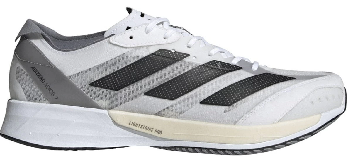 Get after your next PR in the updated Adidas Adizero Adios 7. Cushioned with Lightstrike and Lightstrike Pro, this shoe can deliver resilient impact absorption while staying incredibly lightweight, perfect for race day or any day. The upper is made with a breathable mesh and is feeling lighter than ever. Finally, TORSIONRODS contributes a soft stiffness that increases force transfer in each stride. All of these work together to bring you a snappy, lightweight ride to the finish.