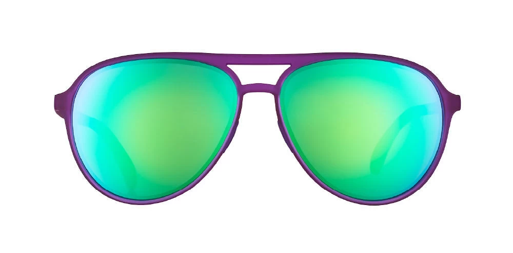 The Goodr MACH Gs are a classic aviator style made to give you the speed if you feel the need. Plus, this smooth, sleek frame means no unsightly imprints on your nose from those weird nose pads on traditional metal aviator frames.