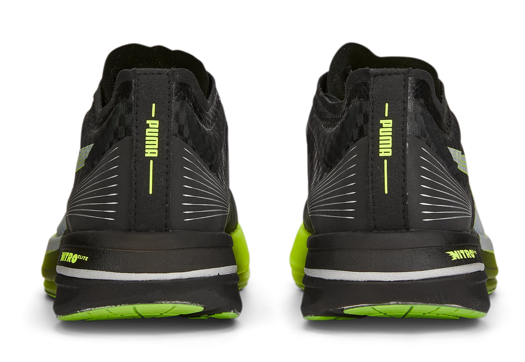 Hit turbo speed. The PUMA Deviate NITRO ELITE is a race-day running shoe redesigned for explosive propulsion. A carbon fiber INNOPLATE acts as a lever for maximum energy transfer at toe-off while NITRO ELITE foam offers max cushioning that won’t weigh you down. The NITRO ELITE midsole foam provides smooth, soft cushioning without adding weight.