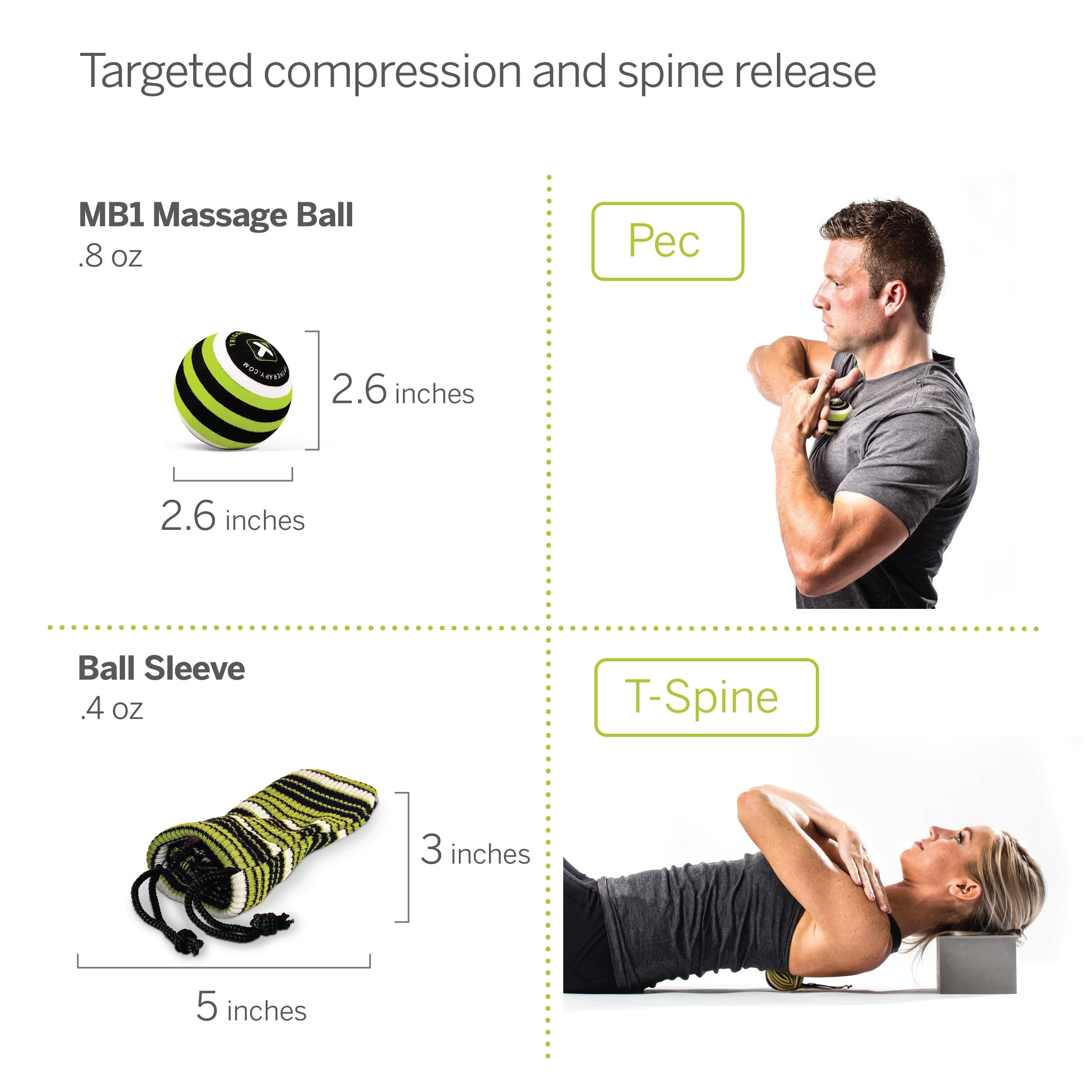 - MB1 Massage Ball: Provides direct deep tissue compression for targeted relief of aches and pains.